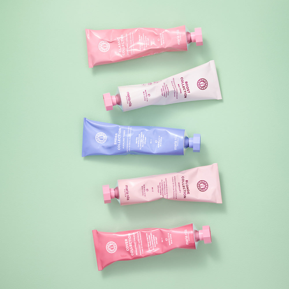 With violet pigments to neutralize yellow tones and give a shiny, silky finish. Perfect for your clients to maintain the result at home.